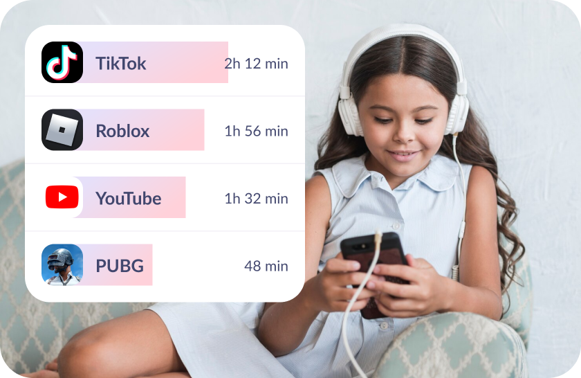 View your child’s screen time in an easy-to-read dashboard, with data for any period — day, week, or month