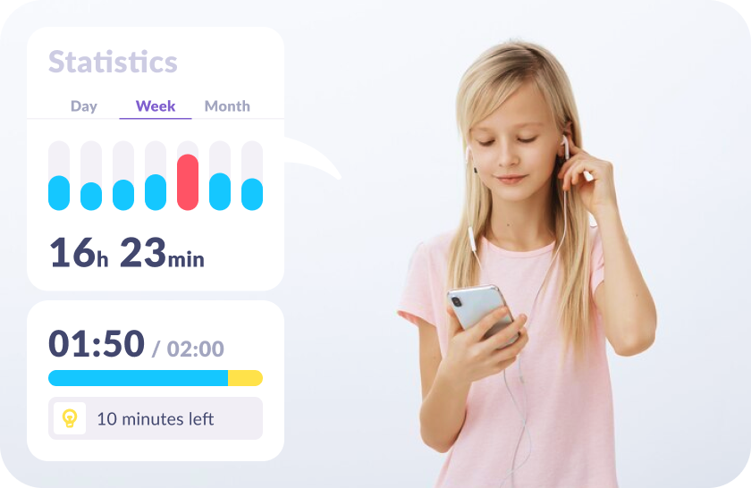 We notify them about their remaining time in apps, show usage statistics, and provide clear limits