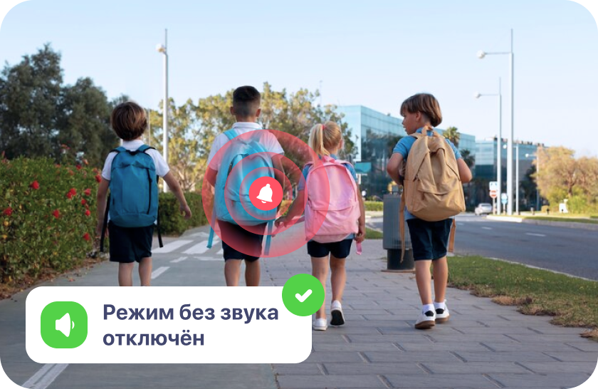 Сигнал плавно становится громче и звучит как обычный рингтон, его легко отключить, если он помешает ребёнку на занятиях