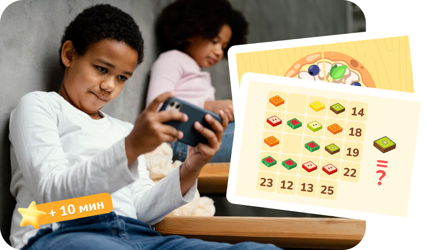 Ребёнок зарабатывает время в телефоне, выполняя наши развивающие задания